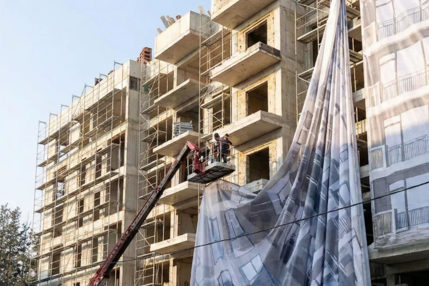 Erdoğan ziyareti öncesinde inşaatların önü apartman görselleri ile kapatılmıştı.Paralar depremzedelerin ihtiyaçları yerine vinç sökümüne gitti