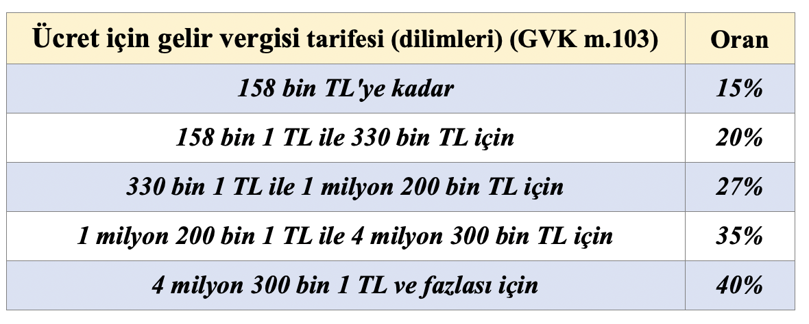 Şöyle ki çalışanların maaşları artan oranlı bir tarifeye tâbi tutulmakta -halk arasında vergi dilimi denilmekte- ve gelir arttıkça daha yüksek bir orandan vergilendirilmektedir.