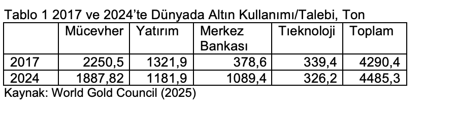Dünyada nüfus artışı da, evlenmeler de azalıyor. Haliyle bu sektörden kaynaklanan altın talebi yavaş da olsa azalıyor. Bu durum Tablo 1’de görülebiliyor.