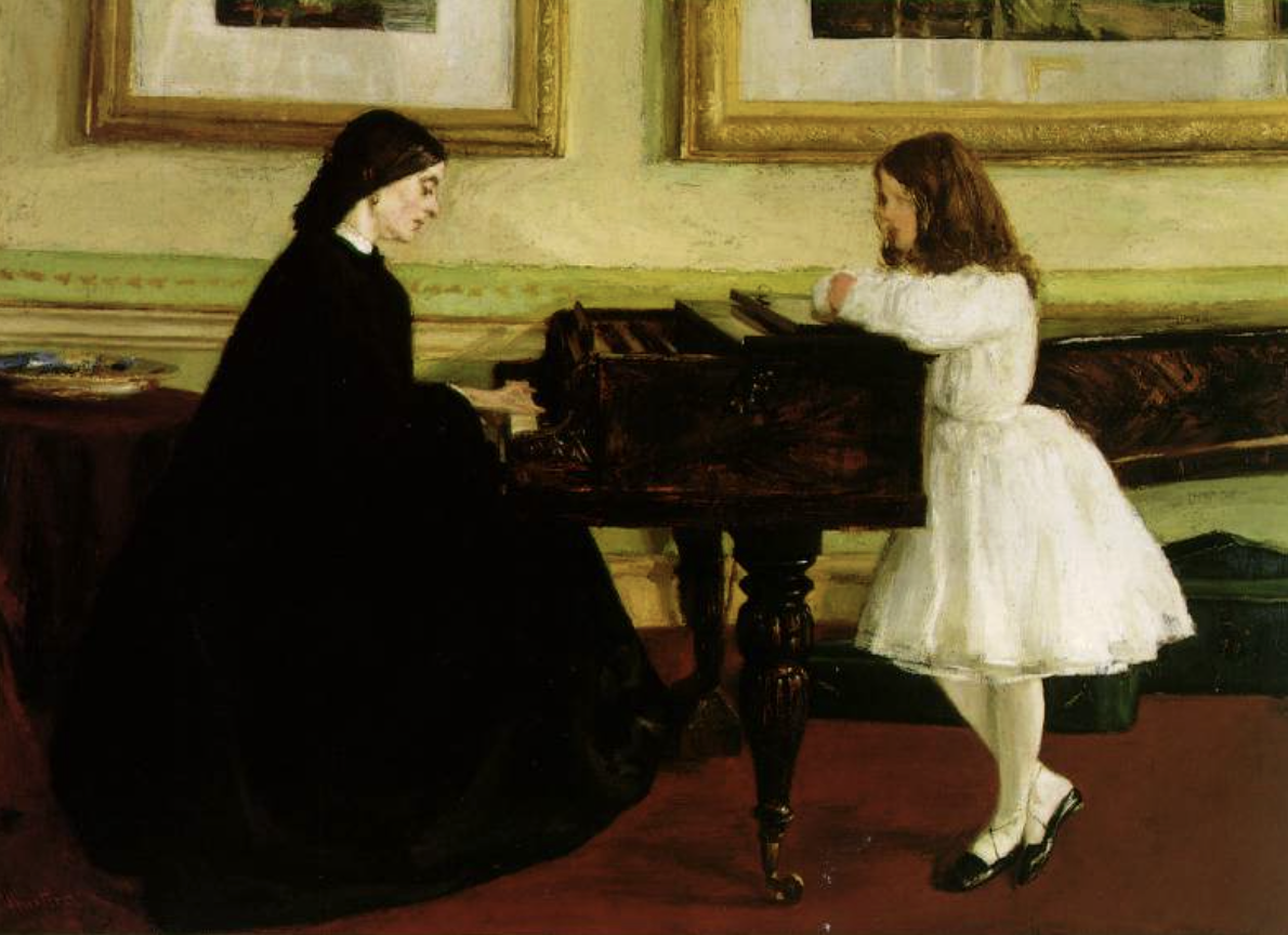 James McNeill Whistler, 1859, Piyano Başında1855’te taşındığı Paris’e ve buradaki bohem hayata kısa sürede uyum sağlar. Atölyesinde çalıştığı ressam Charles Gleyre, daha önce Fransız Devrimi’nin ressamı olarak tanıttığımız David’in bir öğrencisi olan Ingres’in hayranıdır. Bu yüzden Whistler’ın sanat anlayışında da Fransız klasik resmi etkili olacak ve ona özgü tonal, çizgisel resim anlayışının temelini oluşturacaktır. Paris’teki yaşamının üçüncü yılında Gustave Courbet’nin çevresine girmeyi başarır. Bu sayede Manet ile tanışır, Charles Baudelaire’in fikirlerinden etkilenir. Resimleri, Paris’te sergilere kabul edilmeye başlar. İlk ustalık eseri olarak görülen “Piyano Başında” resminin Londra’da sergilenmesi ile çocukluğundan aşina olduğu bu kente yerleşir. Paris’teki dostlarıyla bağlantısını ise hiç koparmaz.