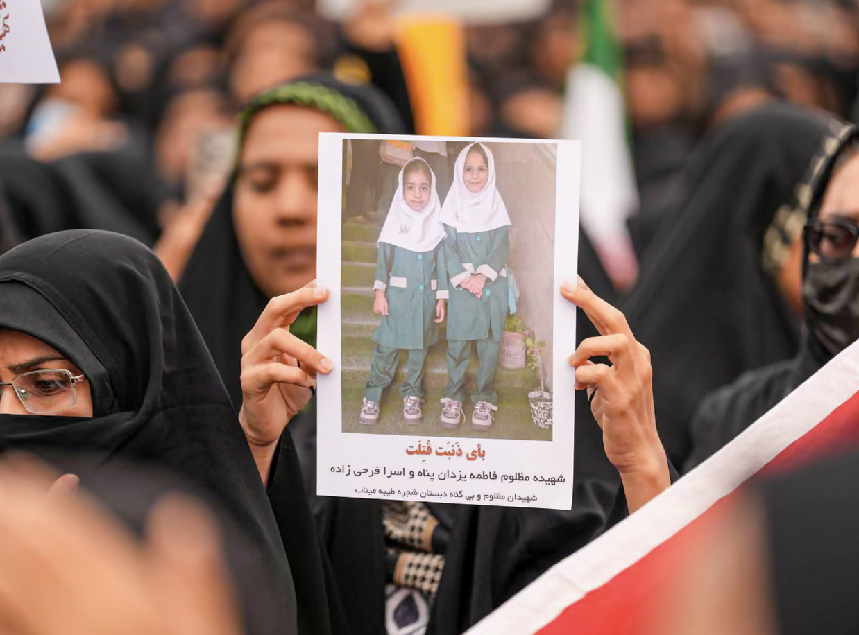 Minab Umman Denizi yakınlarında, başlıca geçim kaynakları tarım, özellikle hurma ve narenciye yetiştiriciliği olan nispeten küçük bir kent. Bu kentten en az çoğu kız çocuğu en az 168 cenaze dün kaldırıldı.