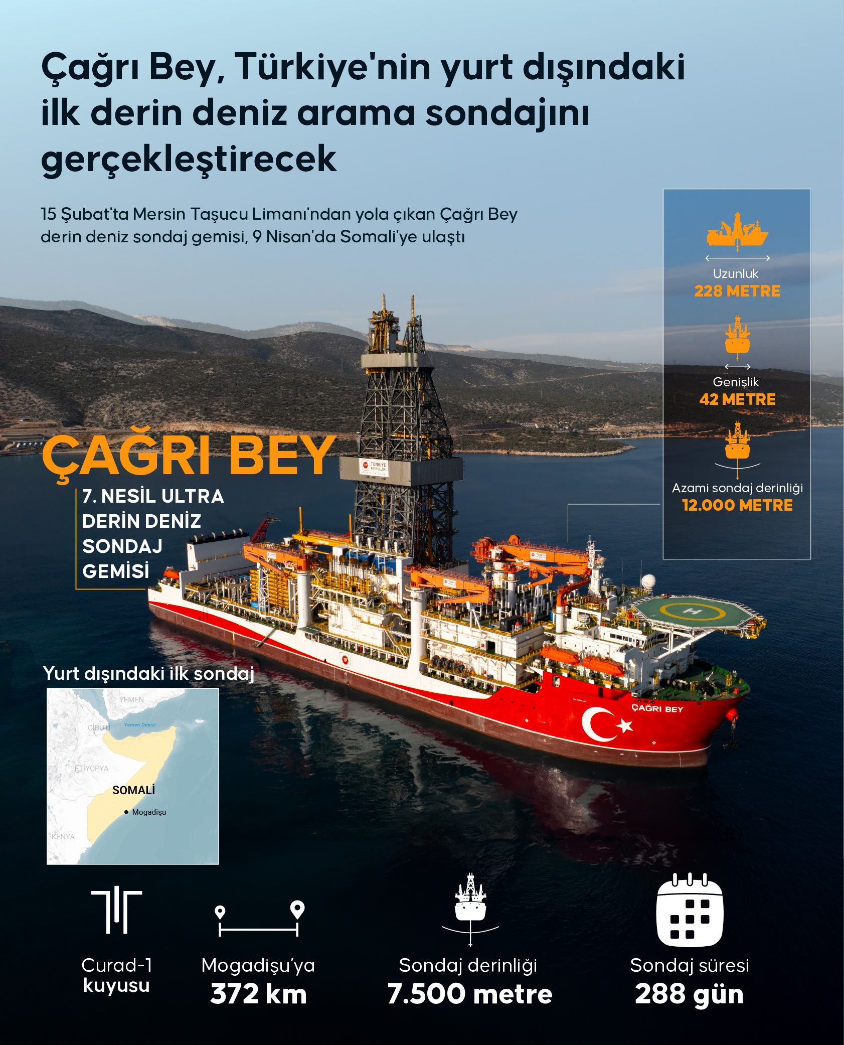Çağrı Bey, ismini Somali'de ailede doğan ilk bebek anlamına gelen "Curad"dan alan ve Mogadişu'dan 372 kilometre açıkta bulunan CURAD-1 kuyusunda çalışacak.