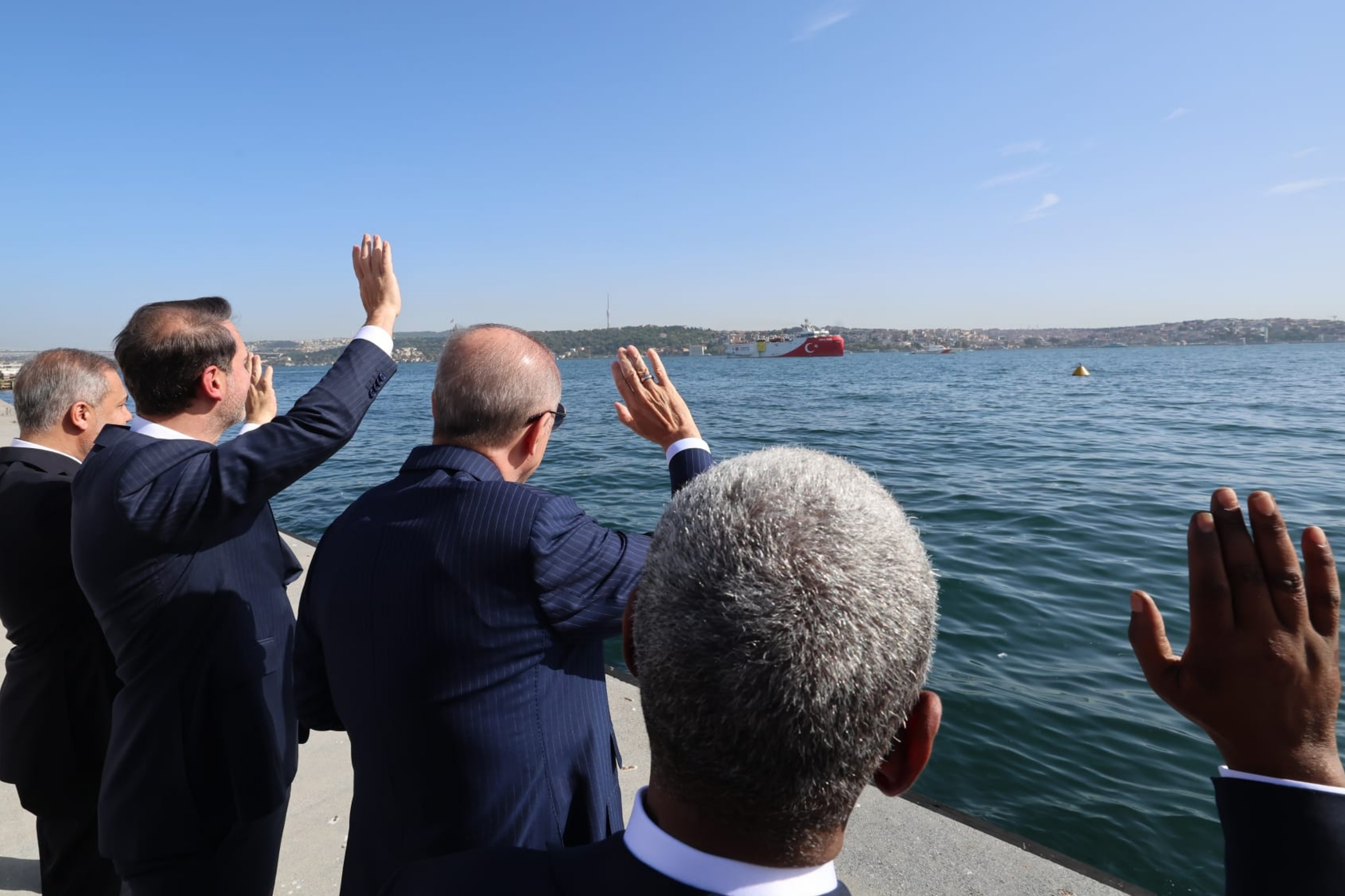 AKP'li Cumhurbaşkanı Recep Tayyip Erdoğan ve Bakan Bayraktar'ın katıldığı tören kapsamında, Oruç Reis Dolmabahçe'den Somali'ye uğurlandı.